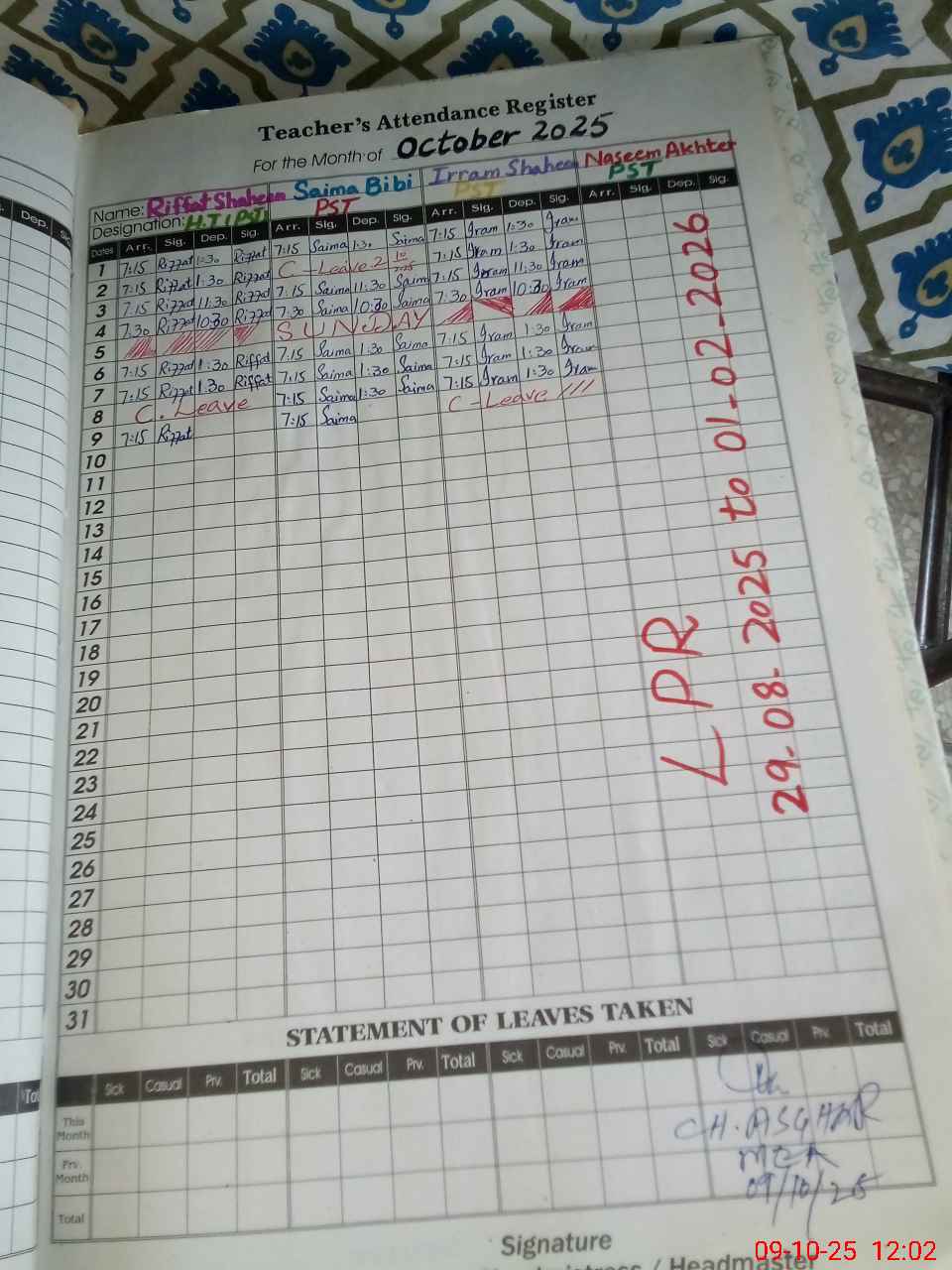 | Name: RI**** SH**** Designation: (School Headmaster's/Headmistress's) PST Phone/Cell Number: 03**** |