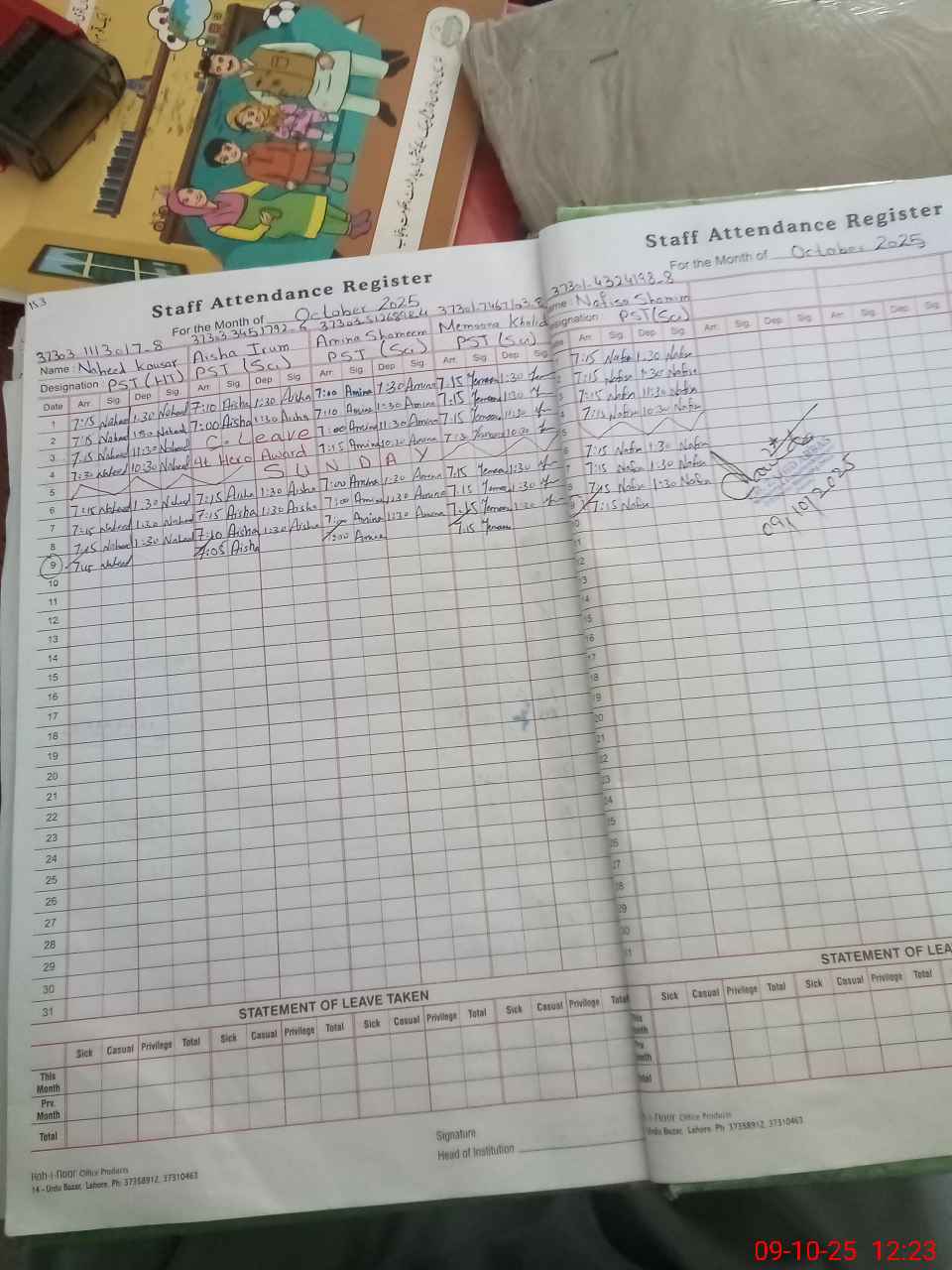 | Attendance Register | Head Teacher | MEA with School | Visit Proof |