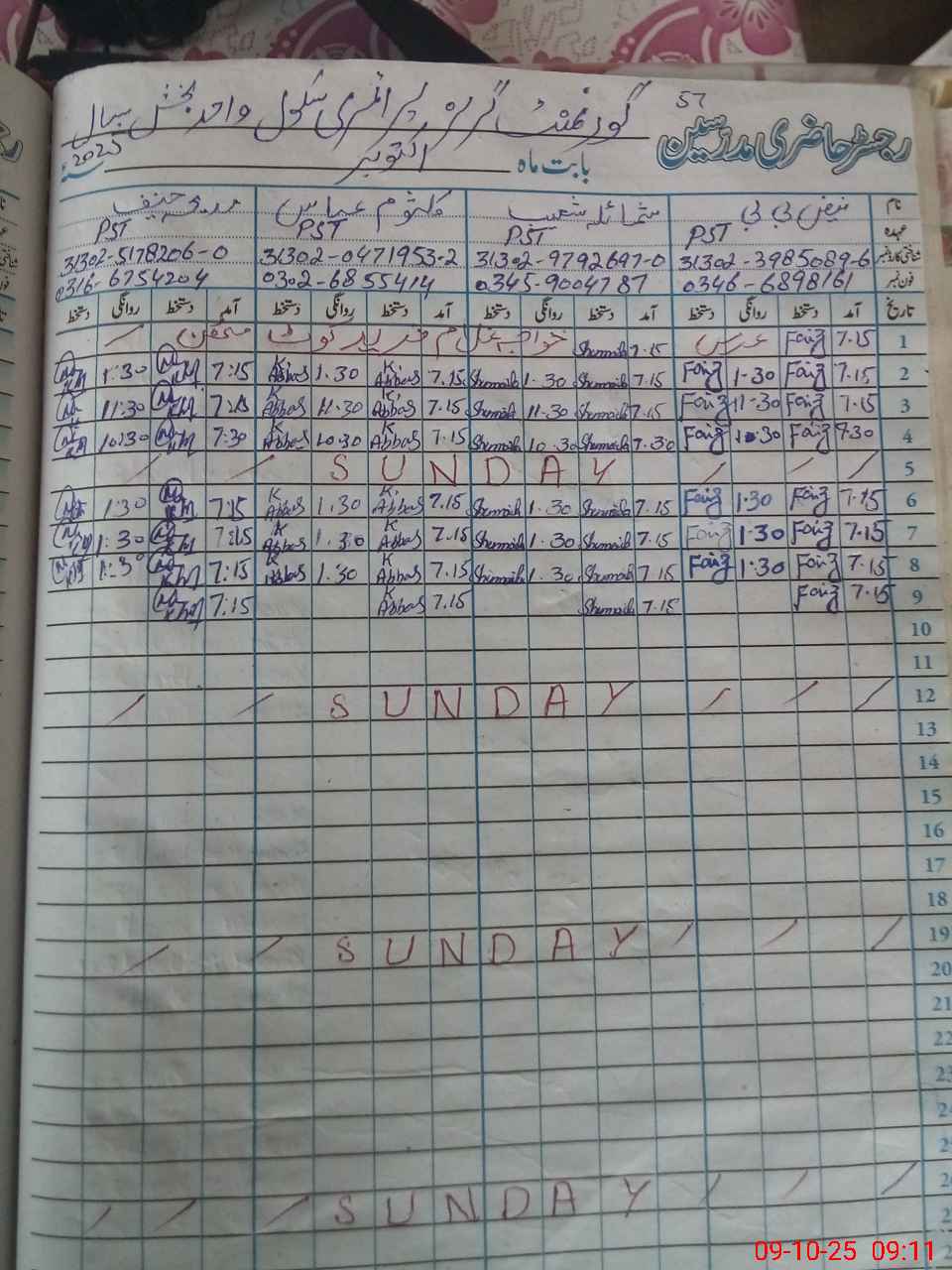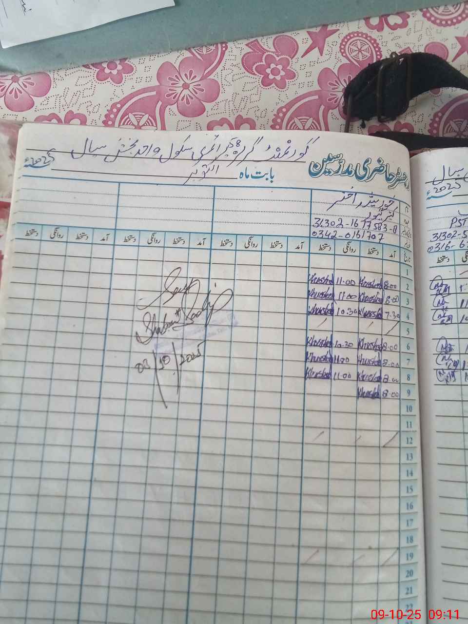 | Name: FA**** Bi**** Designation: (School Headmaster's/Headmistress's) PST Phone/Cell Number: 03**** |