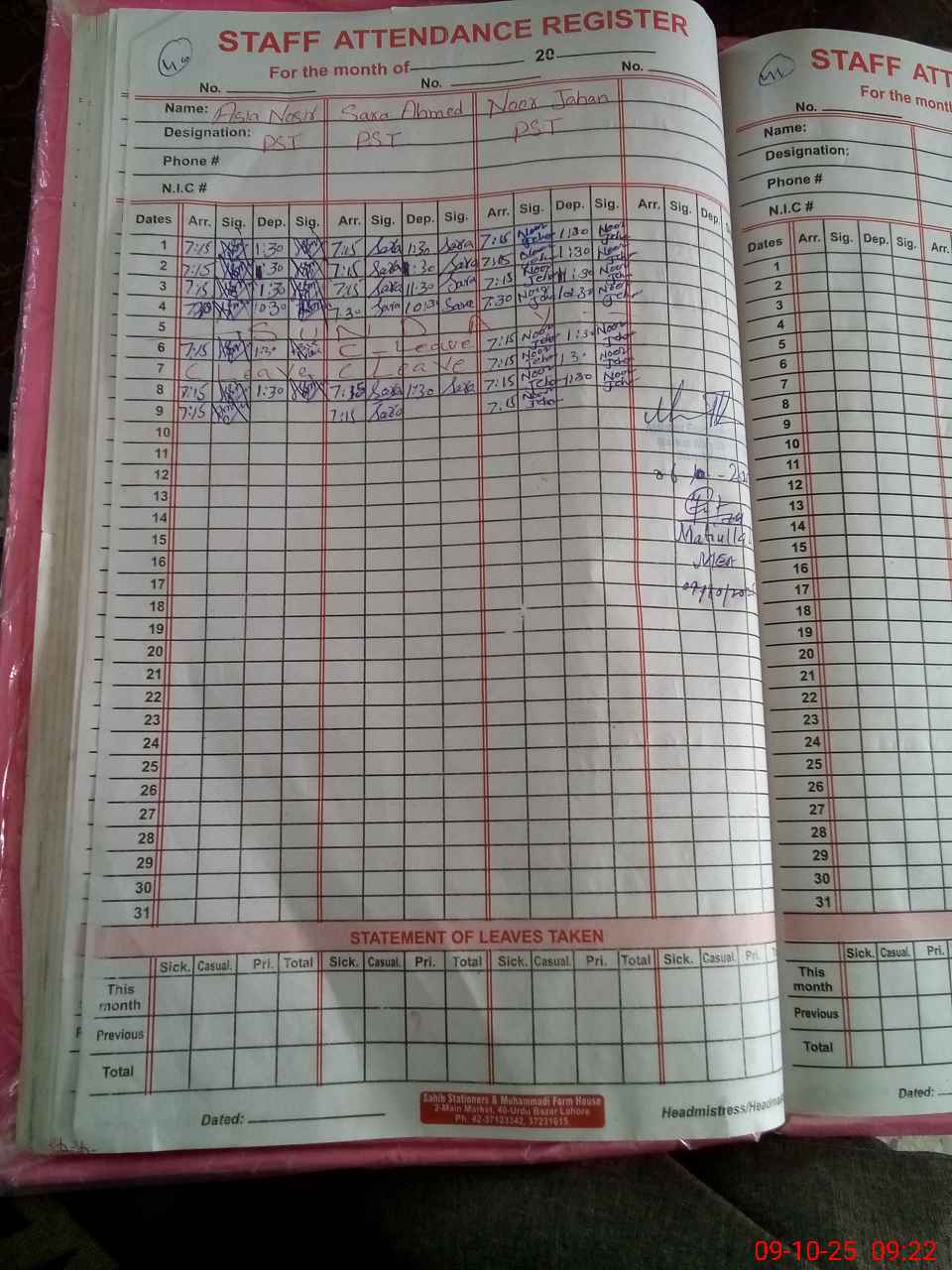| Name: AS**** BI**** Designation: (School Headmaster's/Headmistress's) PST Phone/Cell Number: 03**** |
