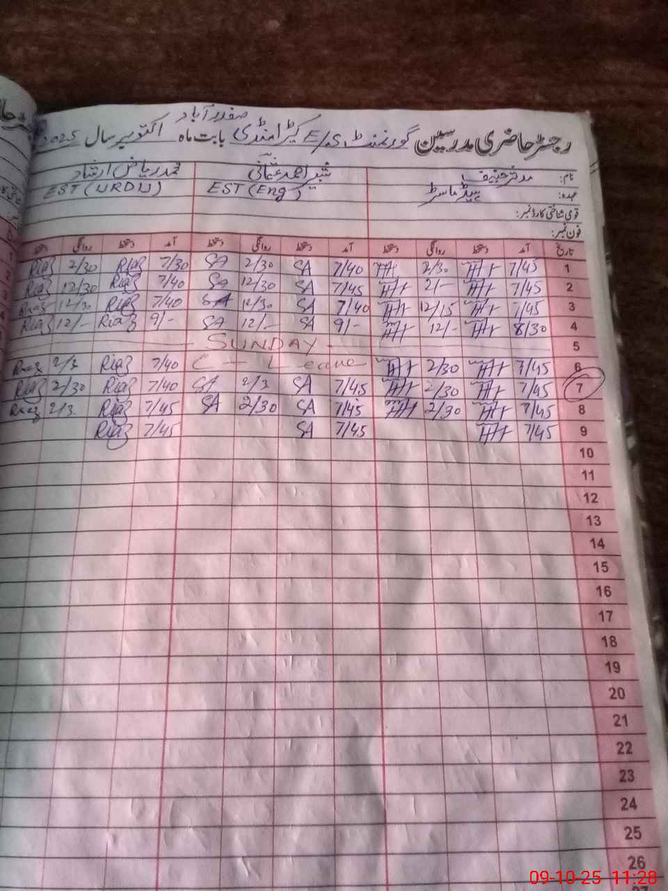 | Name: MU**** YO**** Designation: (School Headmaster's/Headmistress's) SST(general) Phone/Cell Number: 03**** |