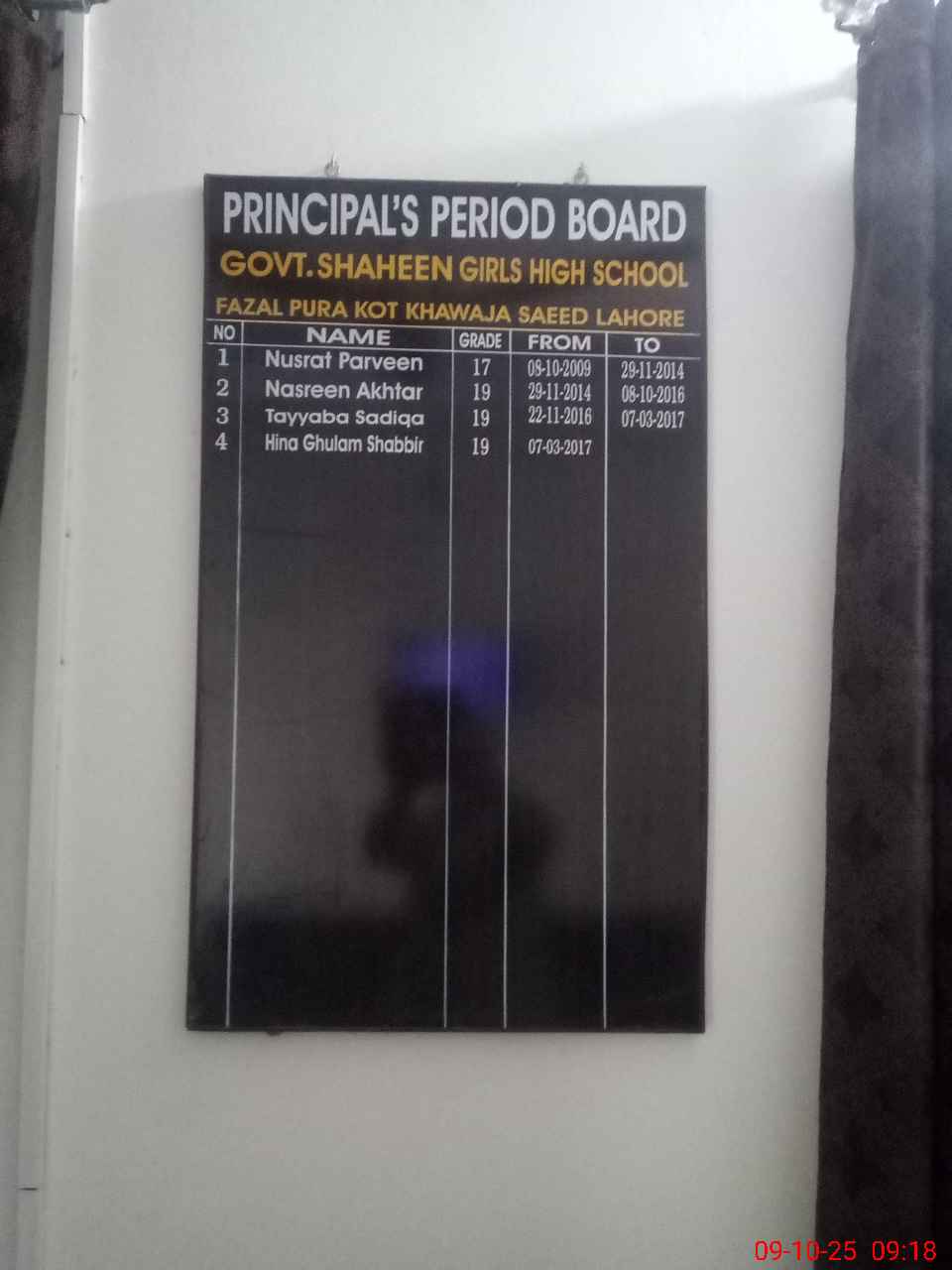 | Name: Hi**** Gh**** Sh**** Designation: (School Headmaster's/Headmistress's) Principal Phone/Cell Number: 03**** |