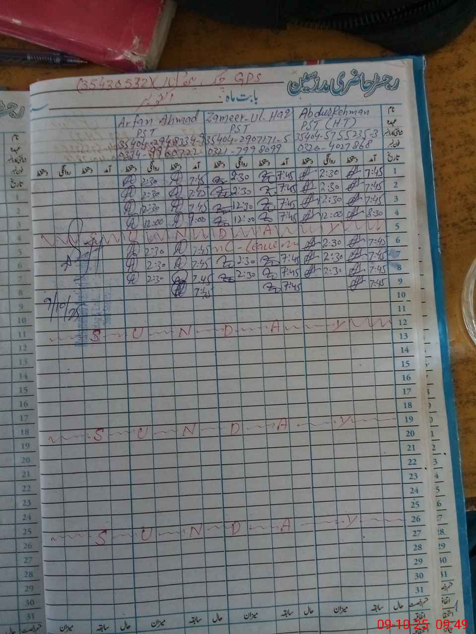 | CNIC | Full Name | Designation | R/C | Absence during last cal. month |
