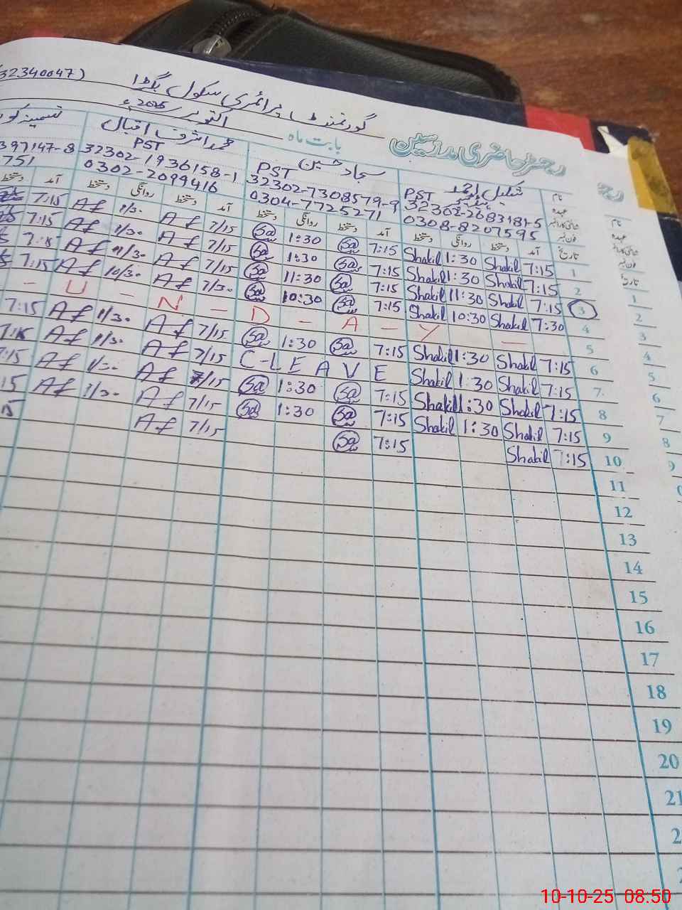 | Name: Sa**** Hu**** Designation: (School Headmaster's/Headmistress's) PST Phone/Cell Number: 03**** |