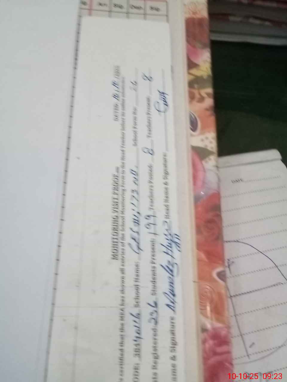 | Attendance Register | Head Teacher | MEA with School | Visit Proof |