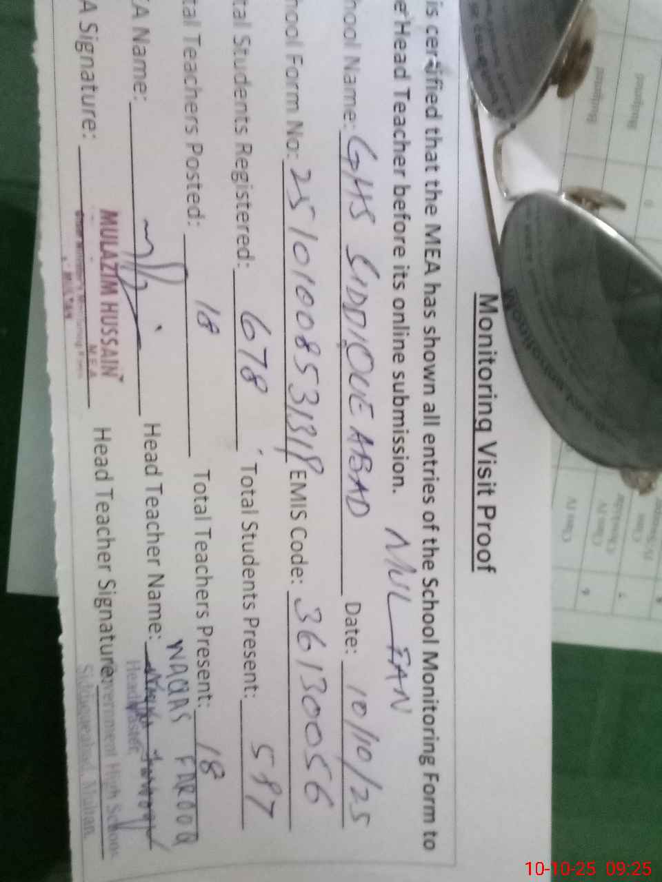 | EMIS Code: 36130056 | Name of School: GHS BASTI SIDDIQUE ABAD (NIHALAY WALA) MULTAN | |||