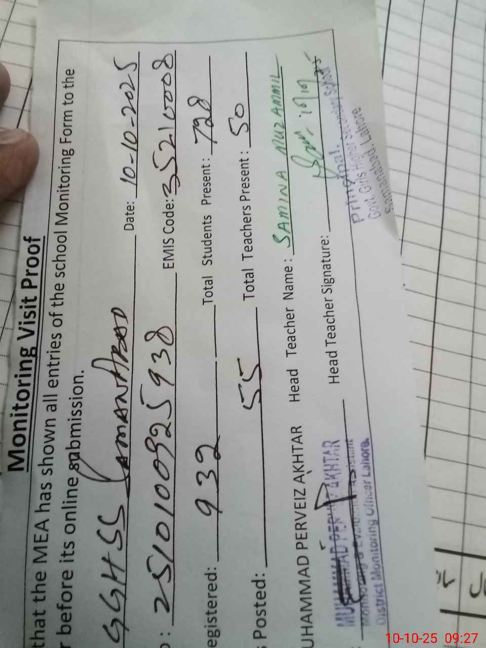 | Monitoring Date: 10-10-2025 | Start Time: 10-10-2025 08:43 AM | End Time: 10-10-2025 09:28 AM | Name of MEA: M.**** AK**** | |