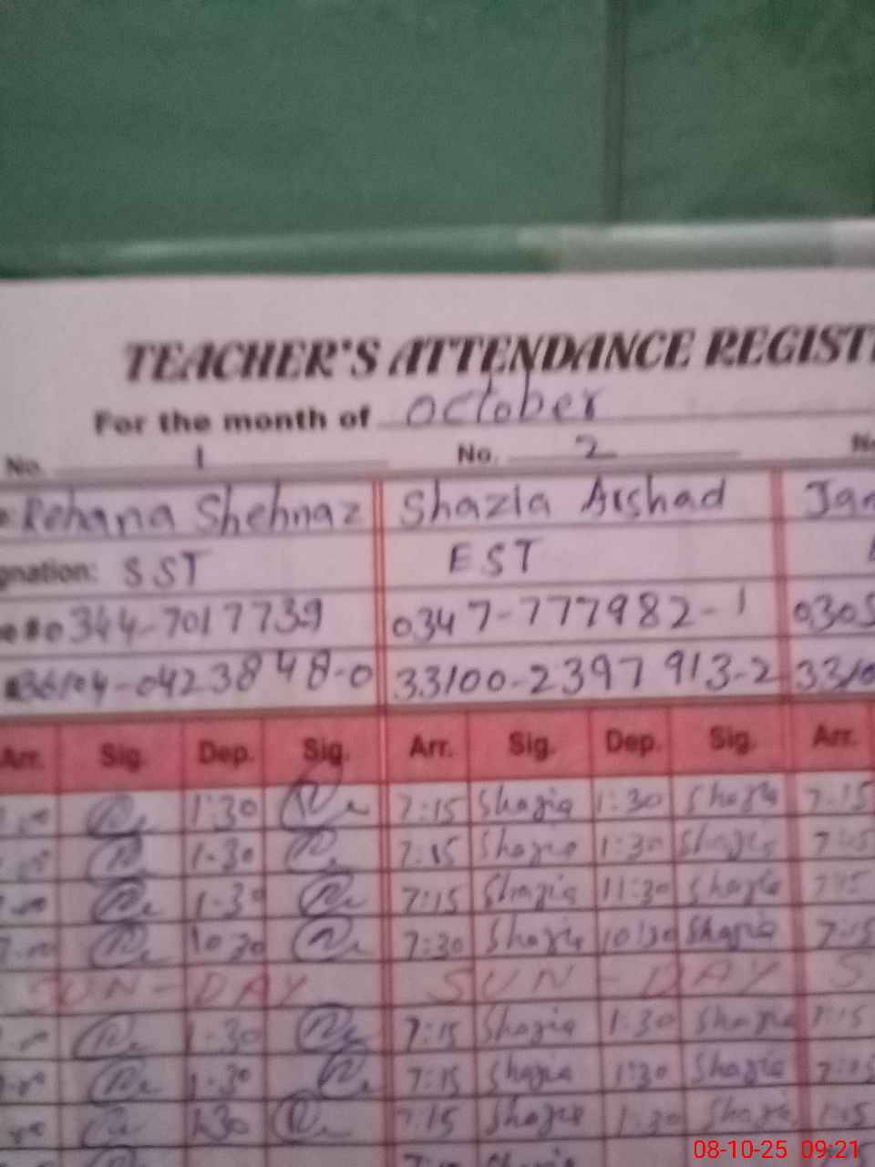| Name: RE**** SH**** Designation: (School Headmaster's/Headmistress's) SST (GENERAL) Phone/Cell Number: 03**** |