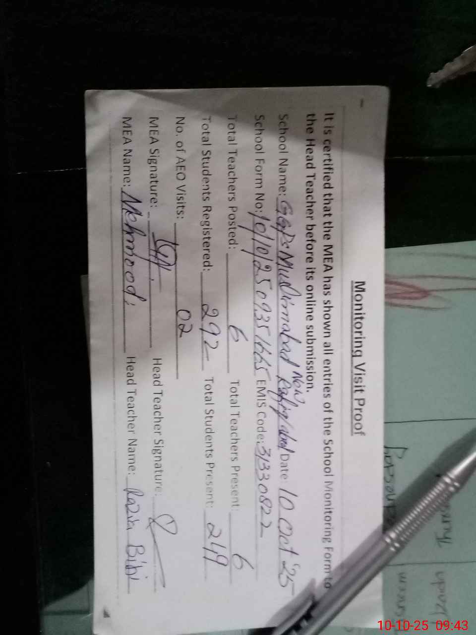 | Certified that this School was Inspected by the Undersigned MEA/DMO Today and the Information Stated Above is as Per Record. | |||||