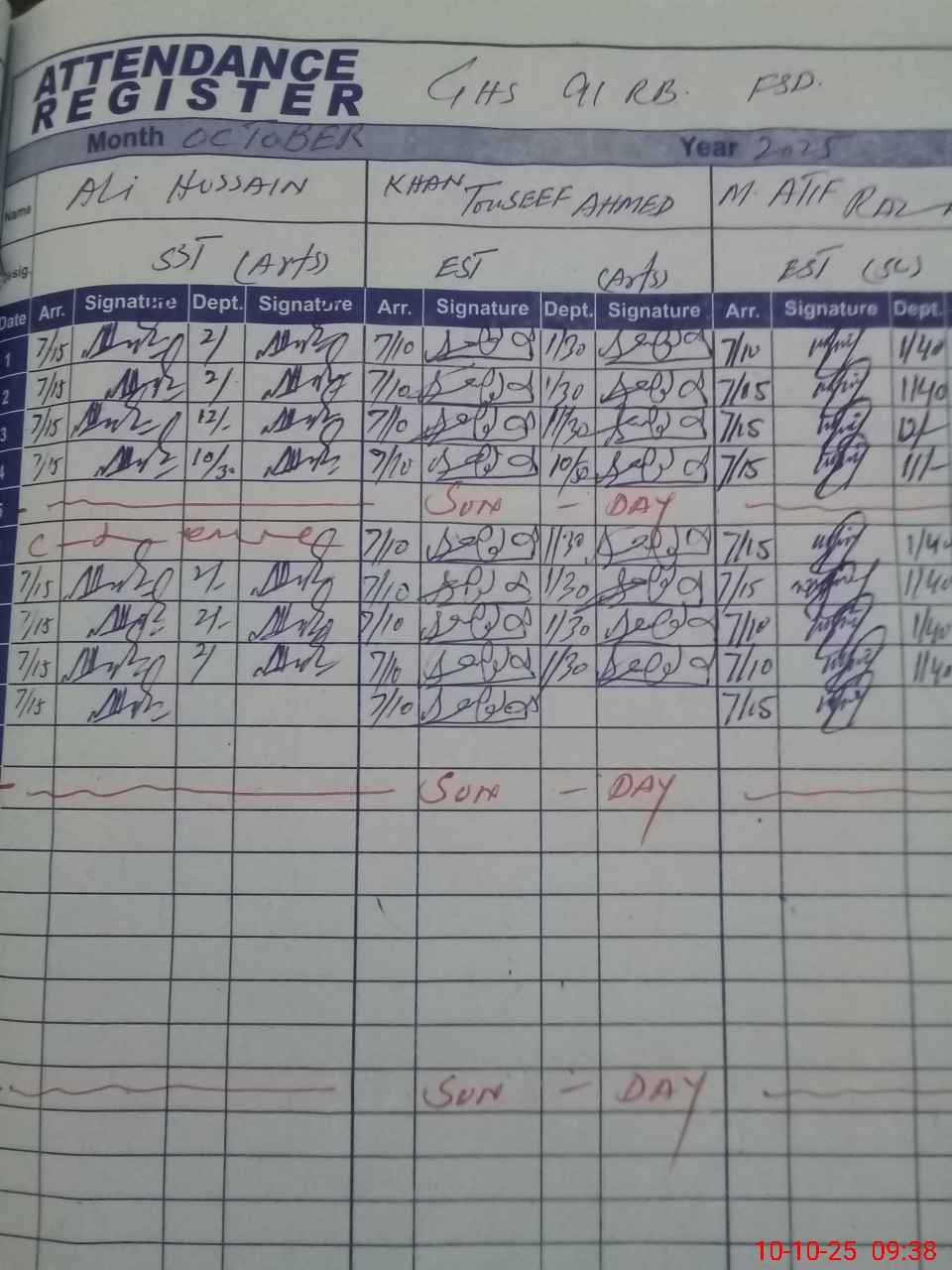 | CNIC | Full Name | Designation | R/C | Absence During Last Calender Month |