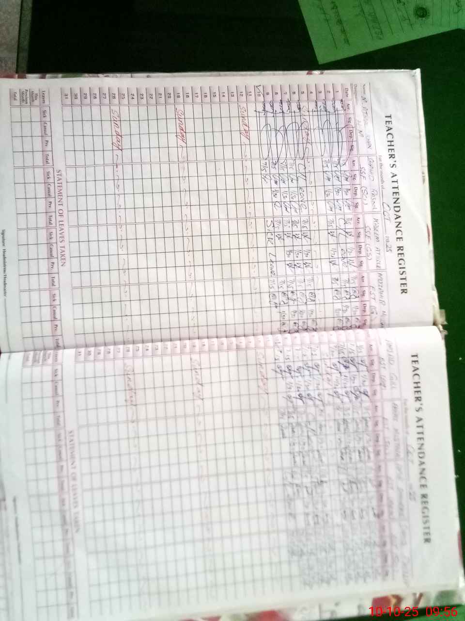 | Leave | Duty | Absent | Maternity | Medical | Ex- Pak |
