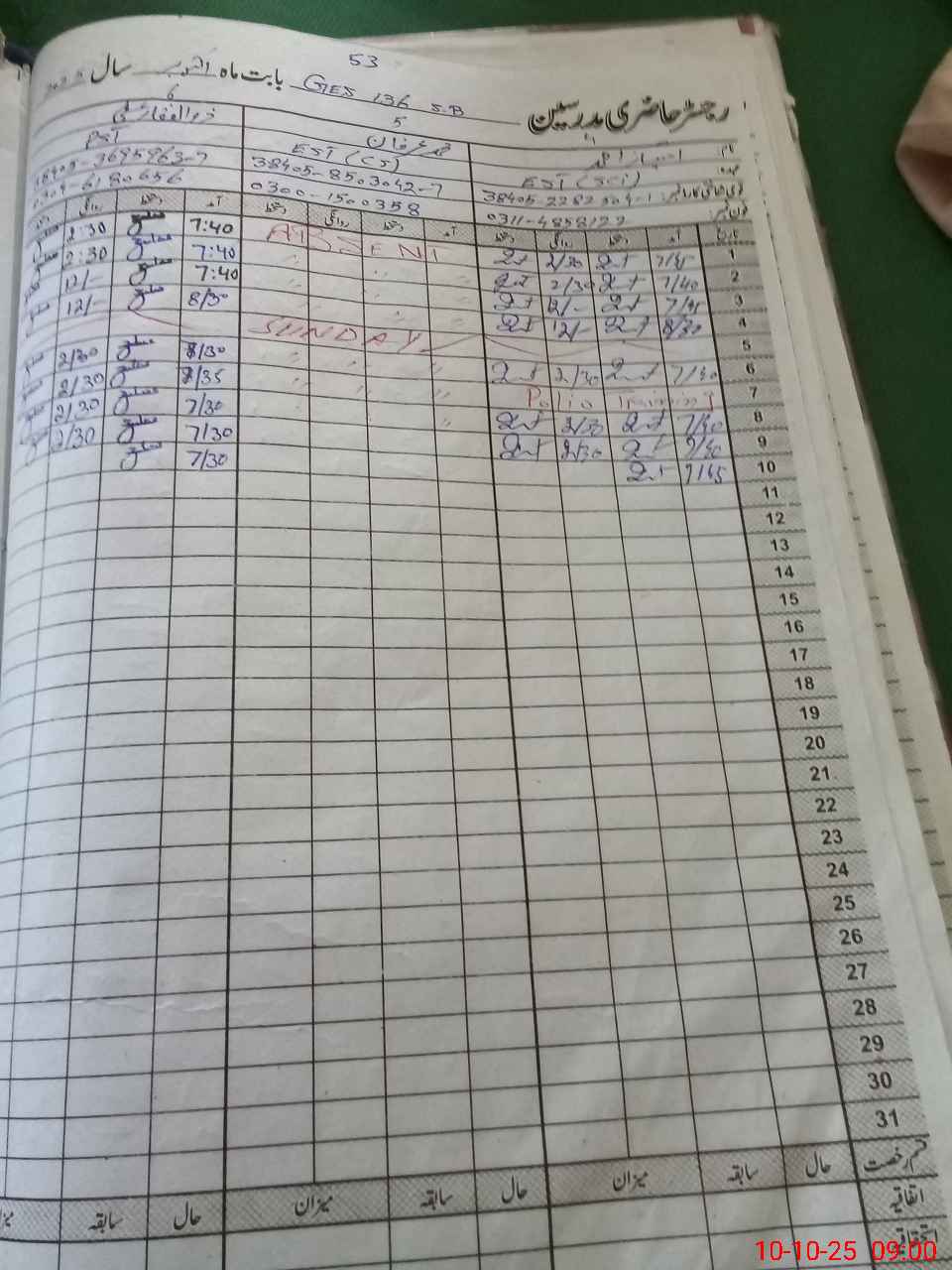 | 38**** | Mu**** Ir**** | Regular | 0 | 0 | 30 | 0 | 0 | 0 | 0 | 0 | 0 | Absent (Un-Authorized) | |