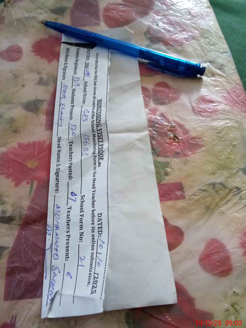 | Attendance Register | Head Teacher | MEA with School | Visit Proof |