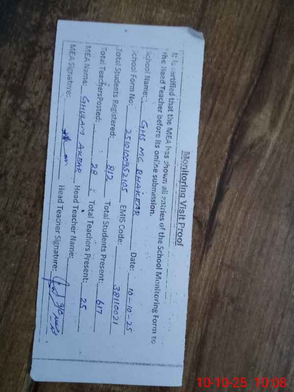 | Attendance Register | Head Teacher | MEA with School | Visit Proof |