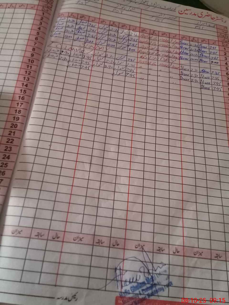 | CNIC | Full Name | Designation | R/C | Absence During Last Calender Month |