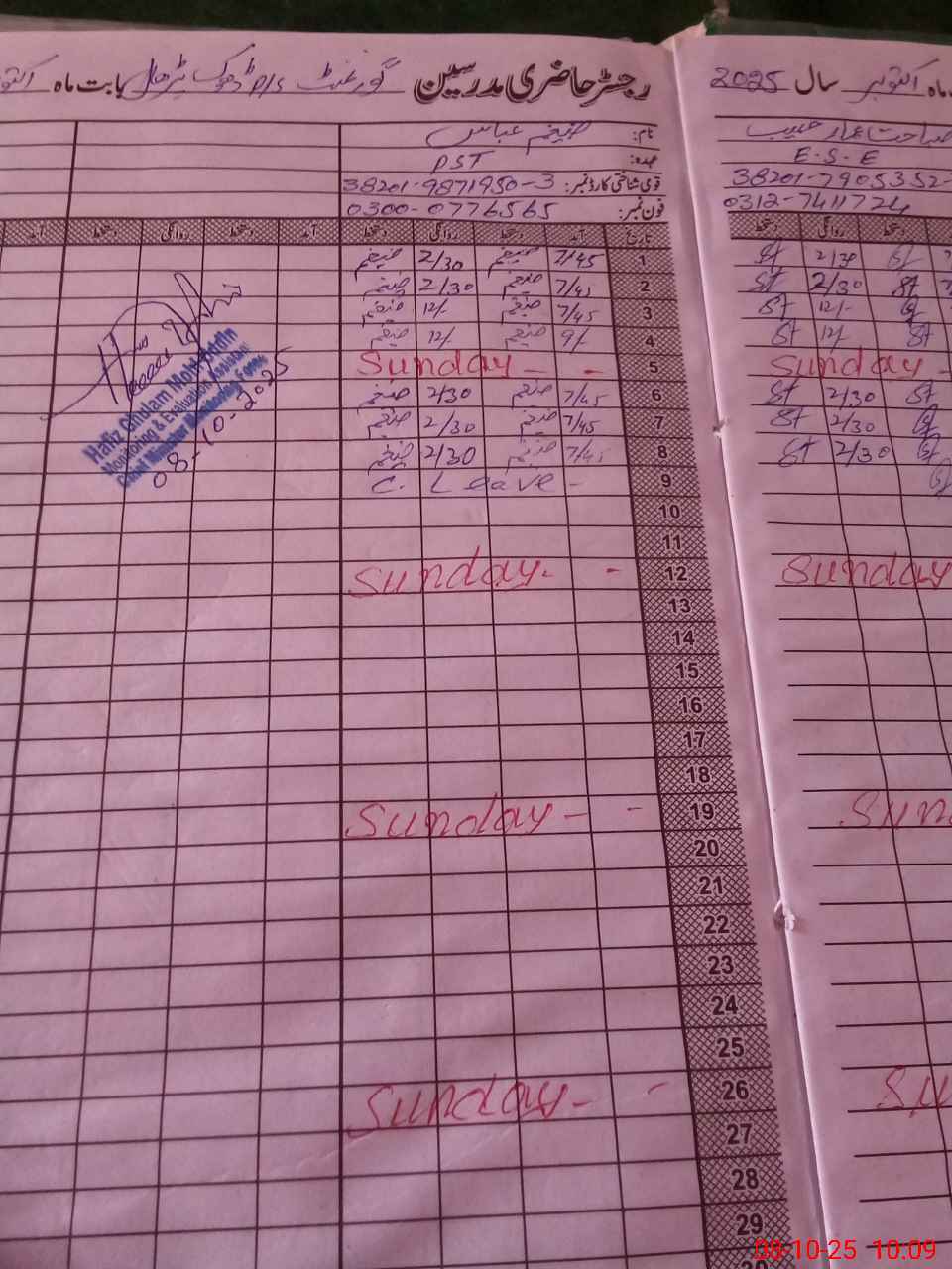 | Name: Ta**** Mo**** Designation: (School Headmaster's/Headmistress's) PST Phone/Cell Number: 03**** |