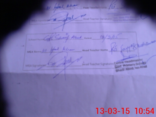 | School Visited by School Health & Nutrition Supervisor (No. of Visits) | 1 | Name1: | Mushtaq Ahmed | Name2: | |