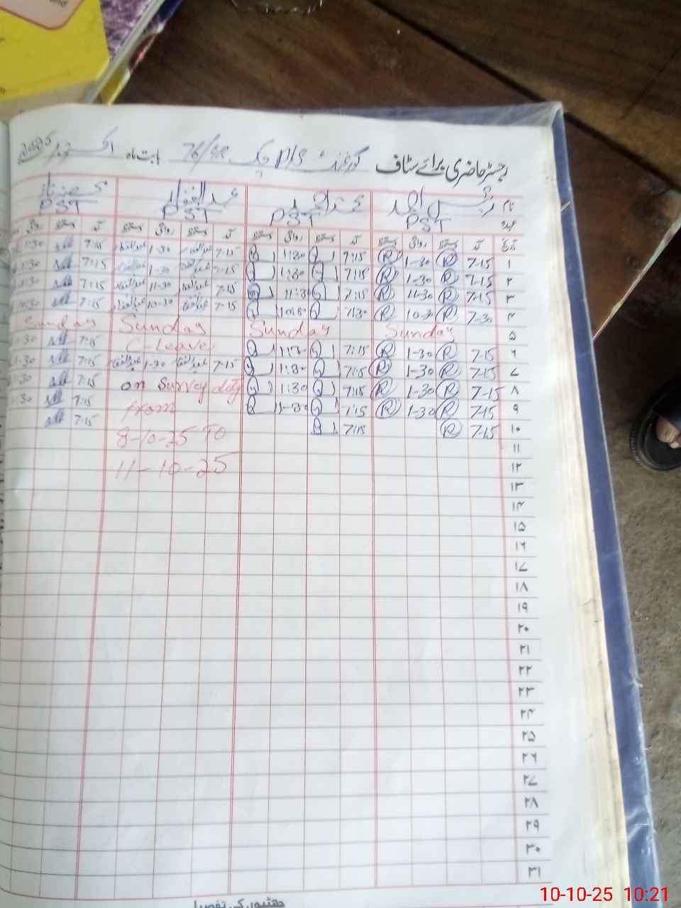 | CNIC | Full Name | Designation | R/C | Absence During Last Calender Month |