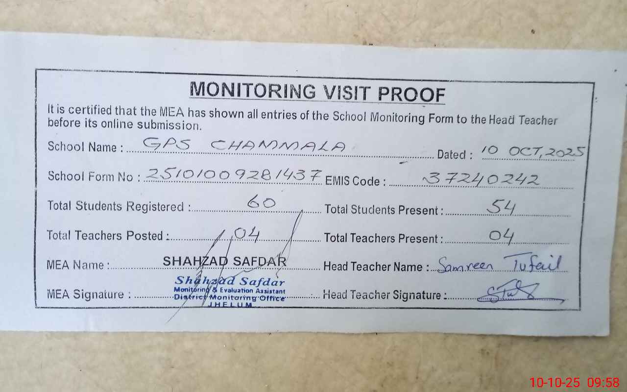 | EMIS Code: 37240242 | Name of School: GPS CHAMMALA | |||