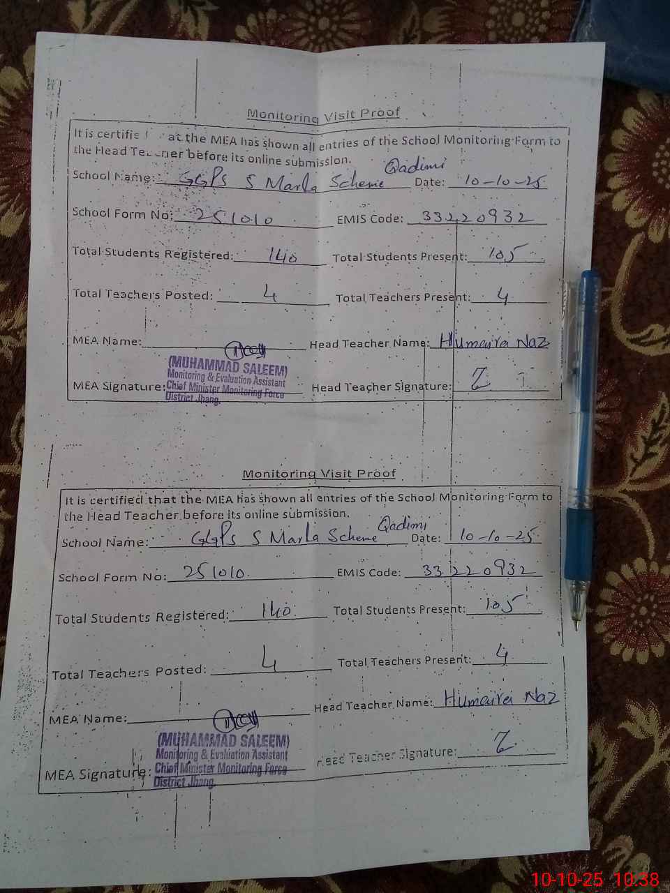 | EMIS Code: 33220932 | Name of School: GGPS 5 MARLA SCHEME QADIMI | |||