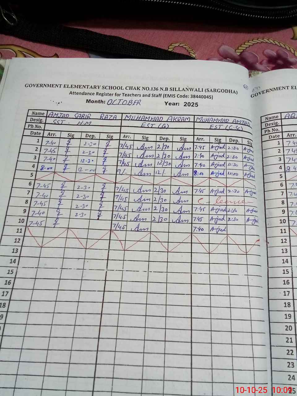 | CNIC | Full Name | Designation | R/C | Absence during last cal. month |