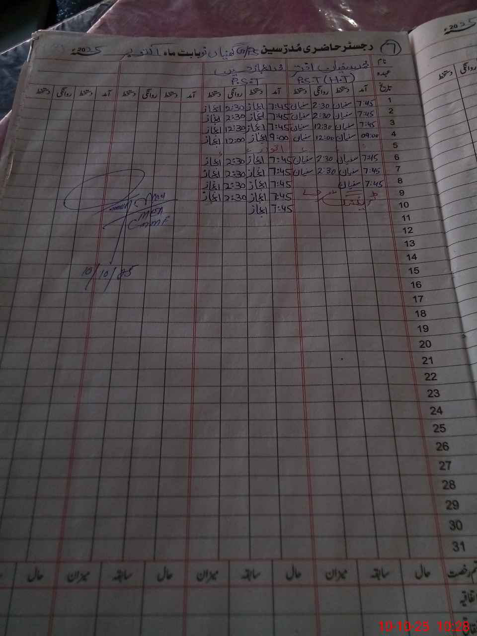 | Name: SU**** Designation: (School Headmaster's/Headmistress's) PST/PTC/JV Phone/Cell Number: 03**** |