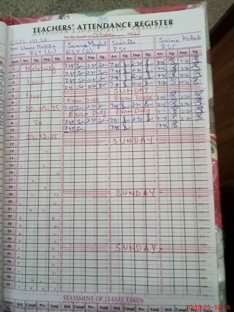 | Leave | Duty | Absent | Maternity | Medical | Ex- Pak |
