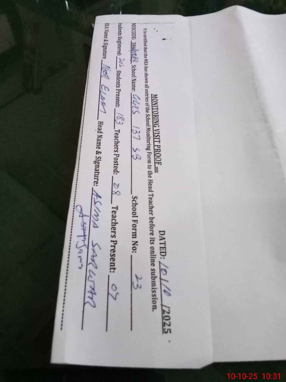 | Certified that this School was Inspected by the Undersigned MEA/DMO Today and the Information Stated Above is as Per Record. | |||||