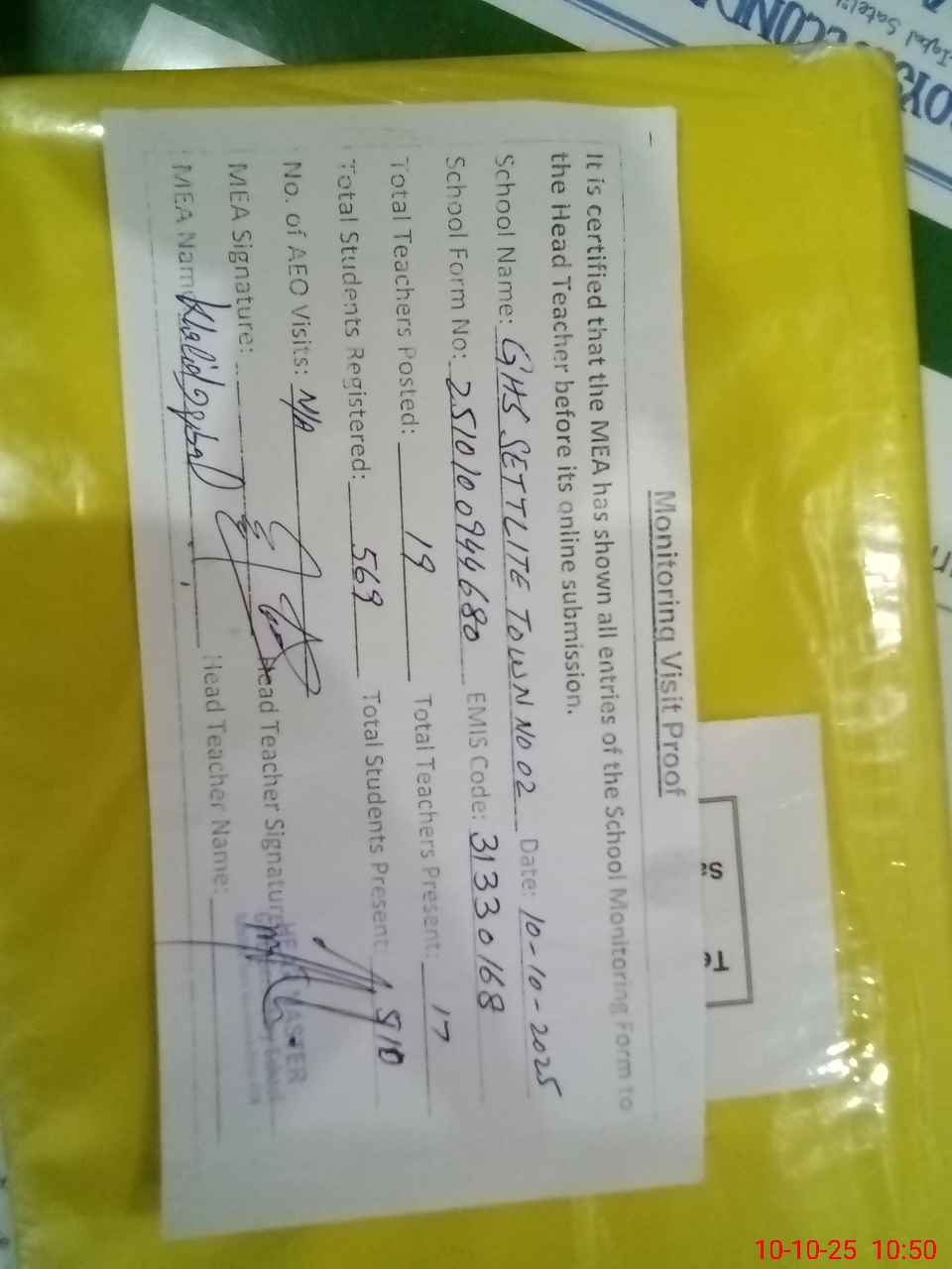 | EMIS Code: 31330168 | Name of School: GHS SETTLITE TOWN NO.2 GULSHAN-E-IQBAL | |||