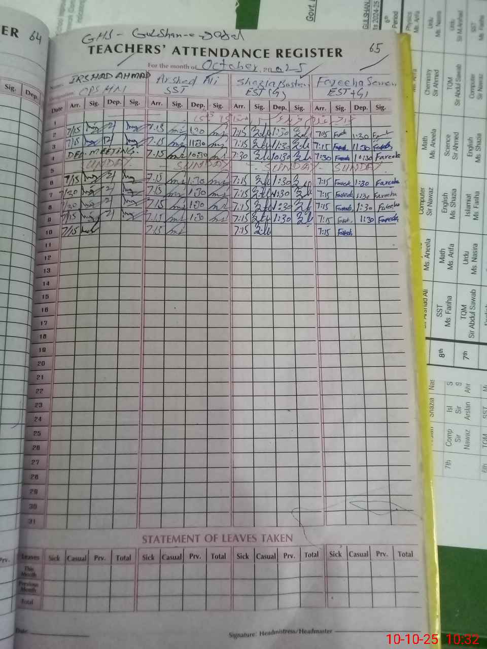 | Remarks (Use Separate Page if Required): Class redum verification is not updated on mea tab as per sis and online teacher attendance not updated on sis today | |||||