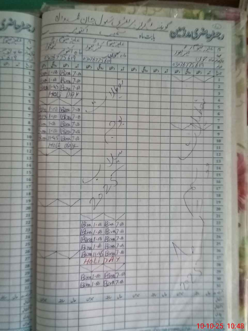| Name: Kh**** Bi**** Designation: (School Headmaster's/Headmistress's) PST Phone/Cell Number: 03**** |