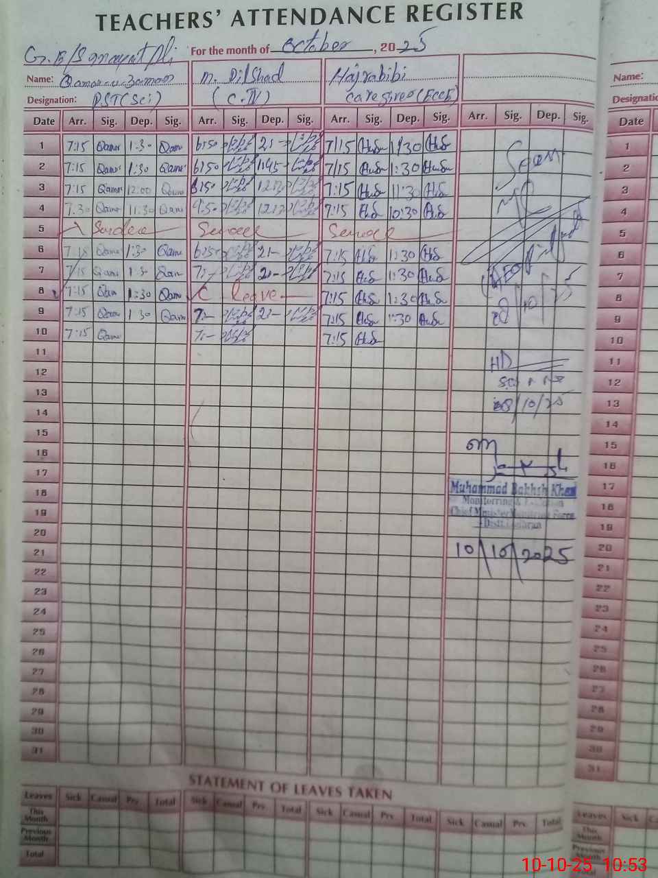 | Monitoring Date: 10-10-2025 | Start Time: 10-10-2025 10:35 AM | End Time: 10-10-2025 10:57 AM | Name of MEA: Mu**** Ba**** Kh**** | |
