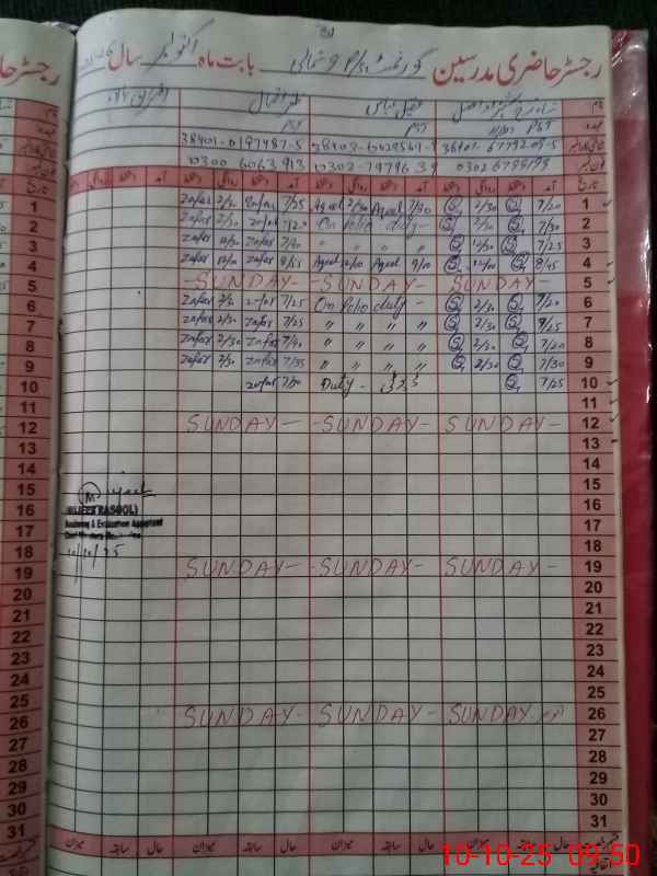 | Name: Sh**** Ru**** Sh**** Designation: (School Headmaster's/Headmistress's) PST Phone/Cell Number: 03**** |