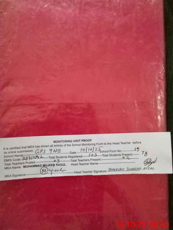 | EMIS Code: 38410142 | Name of School: GPS CHAK NO.9 NB | |||