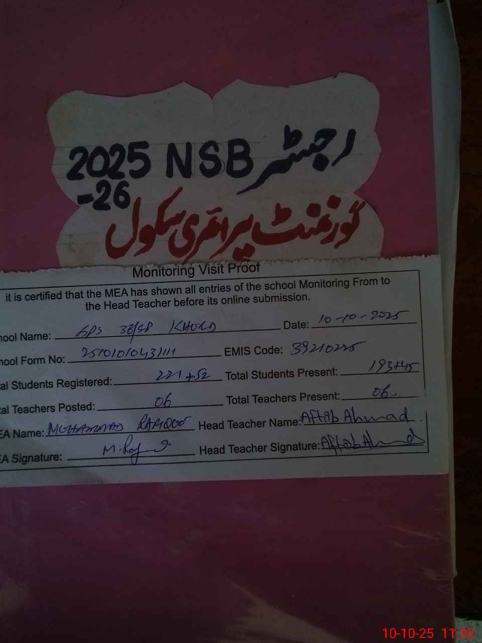 | EMIS Code: 39210225 | Name of School: GPS CHAK NO. 36/SP KHURD | |||
