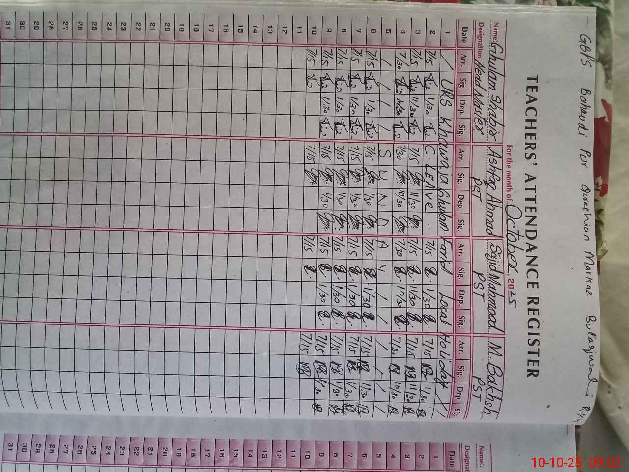 | Name: Gh**** Sh**** Designation: (School Headmaster's/Headmistress's) PST/PTC/JV Phone/Cell Number: 03**** |