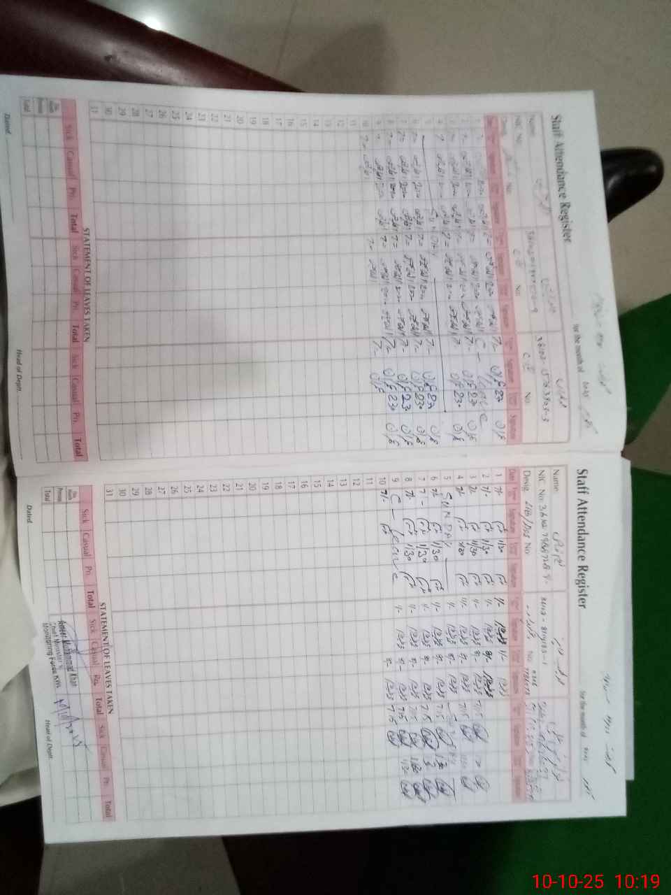 | CNIC | Full Name | Designation | R/C | Absence During Last Calender Month |