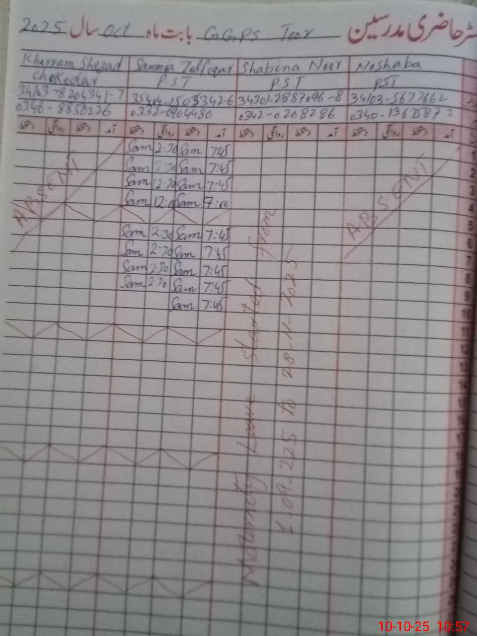 | 34**** | No**** | PST | Regular | 0 | 0 | 0 | 0 | 0 | 0 | 0 | 0 | 0 | Absent (Un-Authorized) |