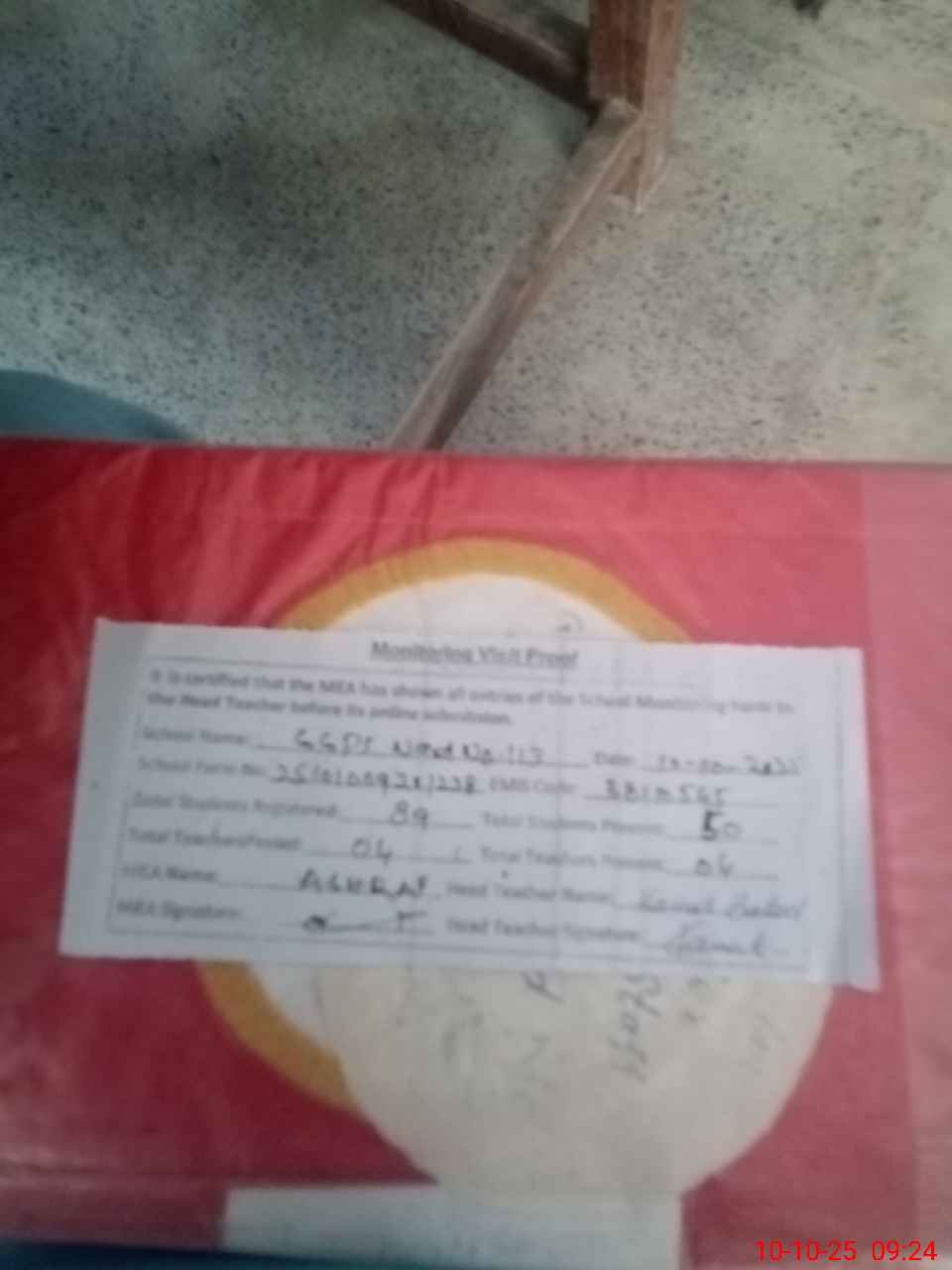 | Certified that this School was Inspected by the Undersigned MEA/DMO Today and the Information Stated Above is as Per Record. | |||||