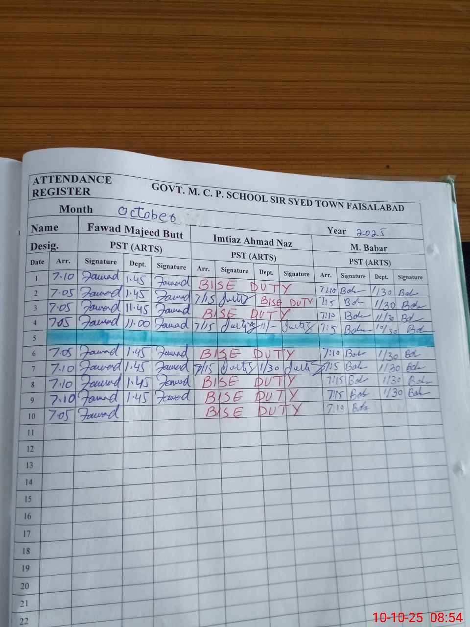| 33**** | Im**** Ah**** Na**** | PST | Regular | 0 | 0 | 0 | 0 | 0 | 0 | 0 | 0 | 0 | Exam Duty |