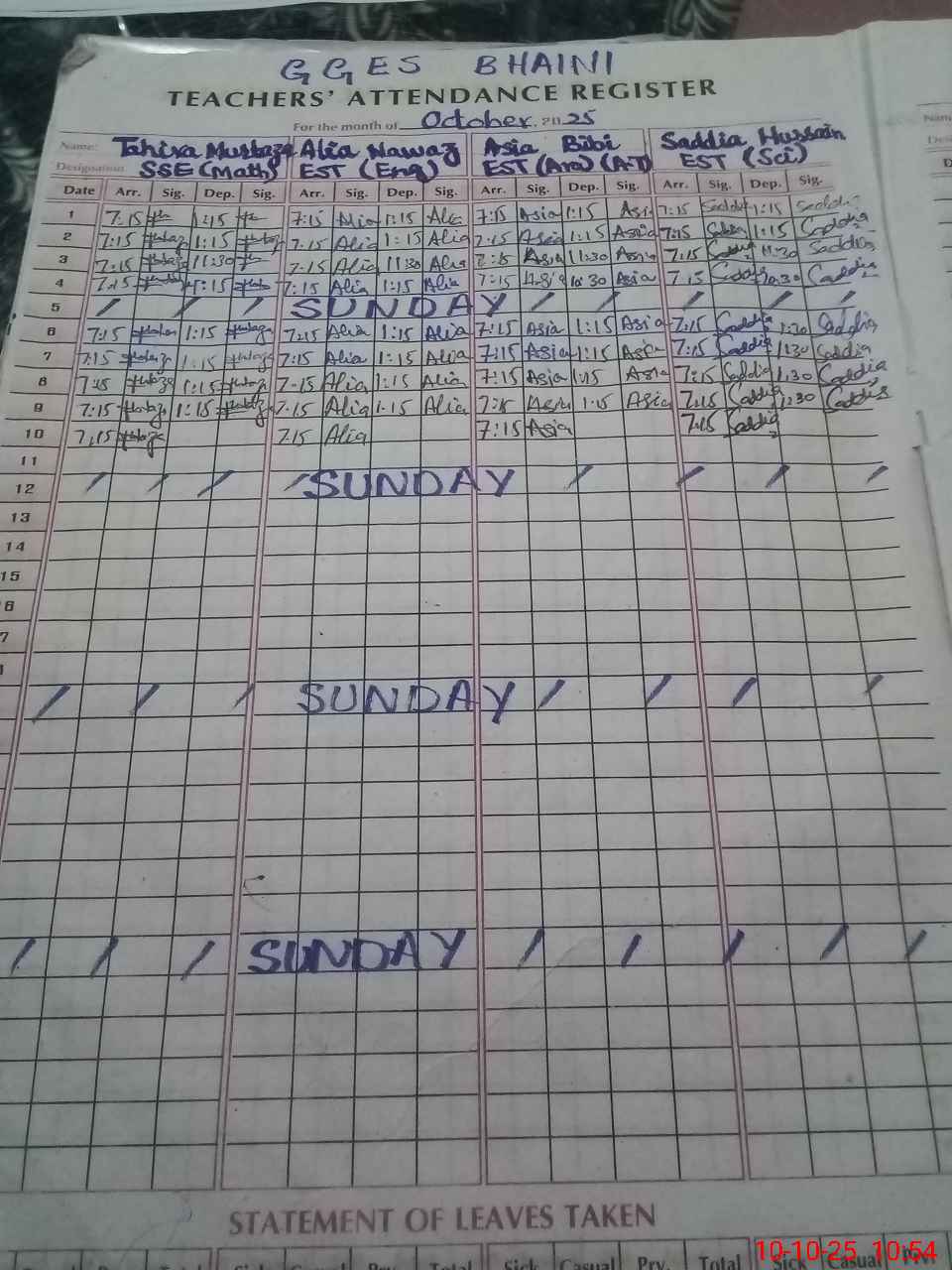 | Leave | Duty | Absent | Maternity | Medical | Ex- Pak |