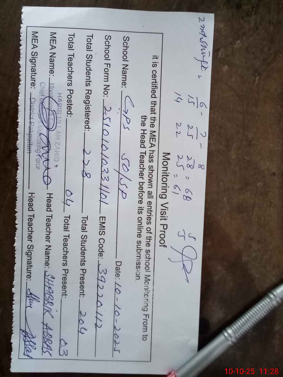 | Certified that this School was Inspected by the Undersigned MEA/DMO Today and the Information Stated Above is as Per Record. | |||||