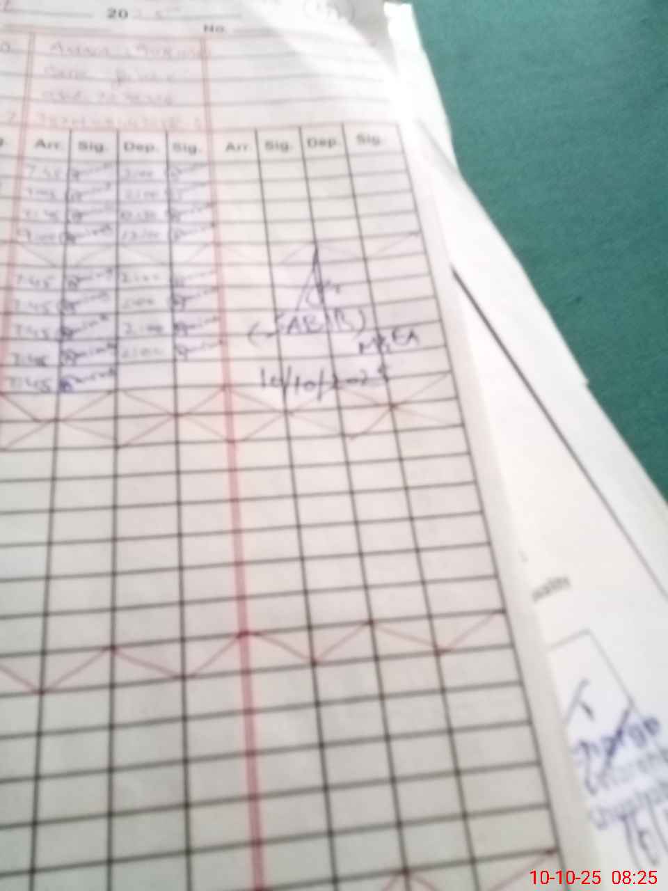 | Monitoring Date: 10-10-2025 | Start Time: 10-10-2025 08:09 AM | End Time: 10-10-2025 08:41 AM | Name of MEA: SA**** HU**** | |