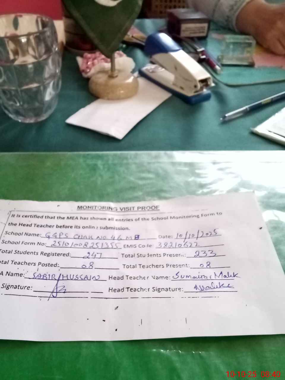 | Certified that this School was Inspected by the Undersigned MEA/DMO Today and the Information Stated Above is as Per Record. | |||||