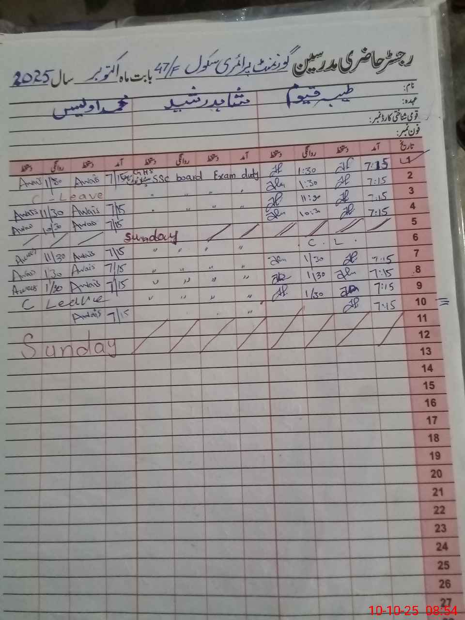 | 31**** | Sh**** Ra**** | PST | Regular | 0 | 1 | 0 | 0 | 0 | 0 | 0 | 0 | 0 | Exam Duty |