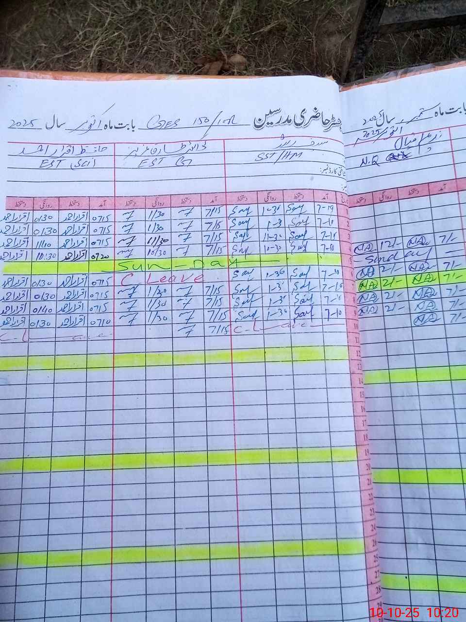 | CNIC | Full Name | Designation | R/C | Absence During Last Calender Month |