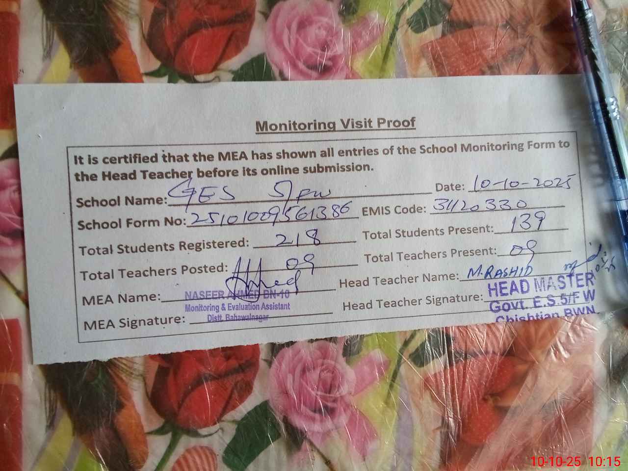 | EMIS Code: 31120330 | Name of School: GES CHAK 5/FW | |||