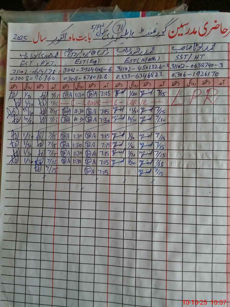 | Name: Ma**** Me**** Designation: (School Headmaster's/Headmistress's) EST Sce Phone/Cell Number: 03**** |
