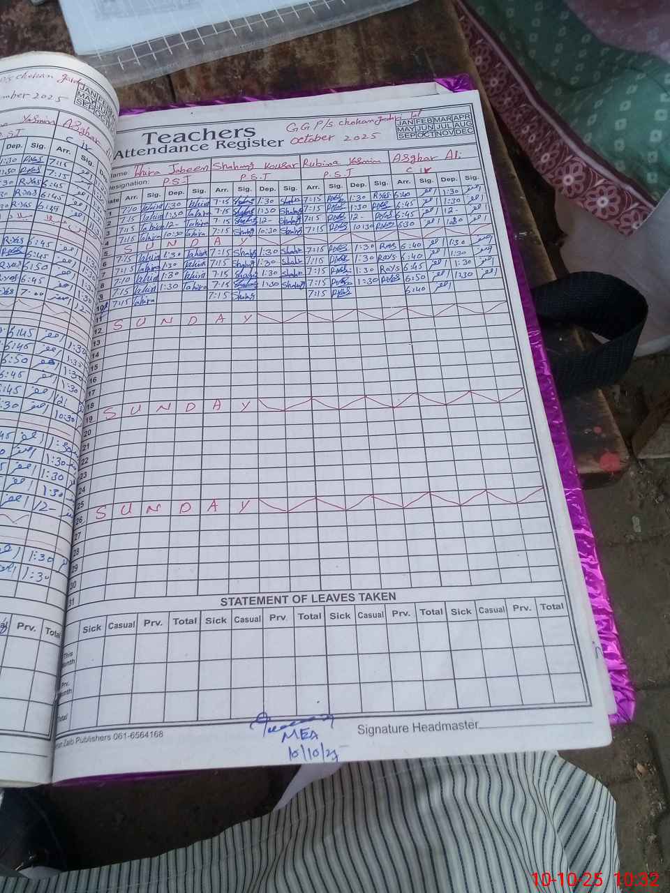 | Name: Ta**** Ja**** Designation: (School Headmaster's/Headmistress's) PST Phone/Cell Number: 03**** |