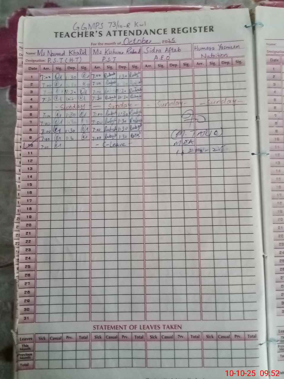 | Remarks (Use Separate Page if Required): 01 STI joined the school from 03 Oct 2025 | |||||